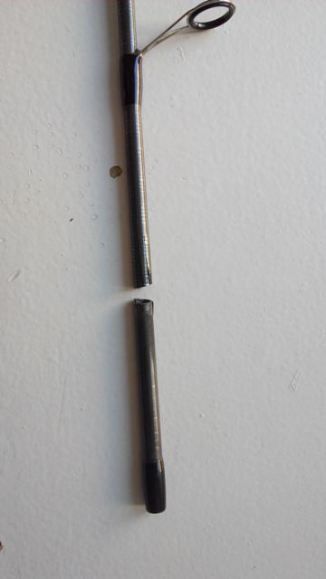 шнурок намотан, по либрам наверняка превышает допустимый по тесту. Либо, ушатал  кольца, хотя, я не представляю как, да и тест-то у палки приличный.