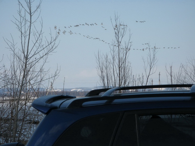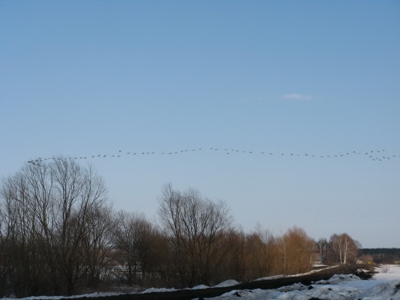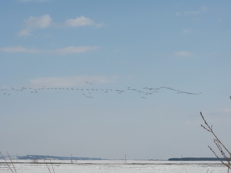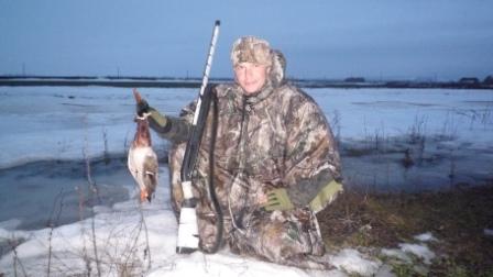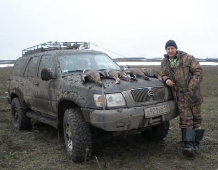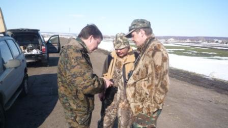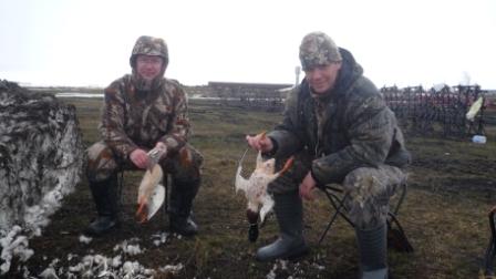 В пятницу после обеда ,сложив в машину давно уже подготовленное снаряжение, поехали в Заволжье. На мосту в Займище обнаружили, что русло Волги уже открылось. Но дальнейшая дорога не укрепила надежды ,поля в снегу и только редкие чёрные проталины на пригорках да чибисы напоминали о приходе весны. За разговорами попали под радар и улыбчивый гаишник сказал что мы у него уже четвёртые охотники. Его видимо уже отобрали в полицию и он честно выписав штраф отпустил. Небольшая рекогносцировка  района охоты показала практически полное отсутствие  гуся, а тем более мест для его присада. Эта информация была подтверждена товарищами прибывшими ранее и разбившими лагерь прямо на снегу. К вечеру отдельные стайки гусей всё же стали появляться , но закономерности в их полётах обнаружено не было. Было принято решение перекрыть возможные места пролёта и надеяться, что пролётные гуси решат таки поближе рассмотреть застывших собратьев так молчаливо сидящих на снегу. Вечернее застолье не позволило заметить наступающие заморозки, а на утро по насту можно было дойти куда угодно. Фантасмагорию дополняла картина охотников расходящихся по засидкам в белых маскхалатах. Тишина утра открытия, заставила подумать, что «зенитчики» остались дома. Но они всё же обнаружили себя часов в 9, хаотичными выстрелами с мест стоянок. За утро было два налёта и слышав треск дроби по крыльям уже усилием мысли пытался свалить гуся на землю, но этого к сожалению не случилось. И всё же итогом утра стали два гуменника, добытых опытными товарищами. Солнечная погода, весёлая компания и редкие стаи гусей пролетающие в пределах видимости помогли скрасить часы «покоя». Но к вечеру субботы прогнозы синоптиков стали сбываться, заморосил дождь. Остатки гусей как будто растворились в туманной дымке. Те из нас, кому позволило состояние здоровья, решили поберечь силы до следующих охот, засобирались домой. Да и на глазах размякающая  дорога не внушала оптимизма. Взяв на буксир транспорт не отличающийся проходимостью, стали пробираться к асфальту. Время в дороге домой прошло незаметно и только Омоновец на посту ,в 12 ночи переворошивший всю машину в поисках незнамо чего,  подпортил настроение от поездки.