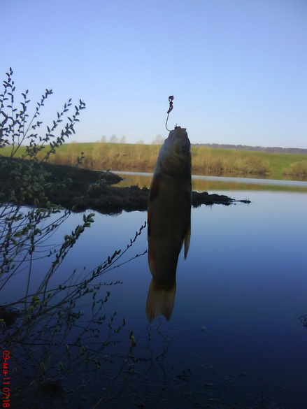 и сразу же поймали около килошного сазанчика.