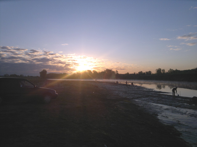 10.05. Меша. Воды чуть больше чем осенью. Добрался до русла, т.к. в заливчиках народ ловит откровенную мелочь. Вода мутная, тяга не очень сильная. Донка, груз 20 гр., 2 крючка, точку держит.