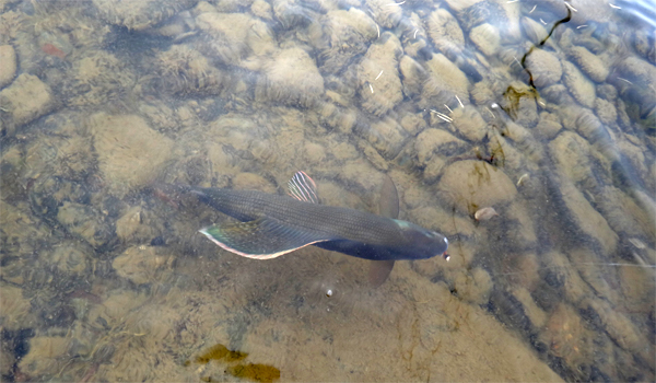 Рыба себя активно проявляет, собирая упавших на воду насекомых.
