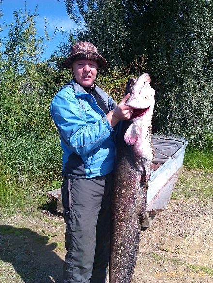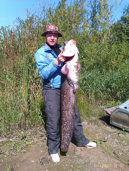 Первое знакомство с усачем. Экземпляр потянул на 20 кг, рост примерно 150см пойман на tinfish 274см 10-42гр, мульт маааленький и плетня 0.16, вываживание заняло около 30 мин, глубина 11м. Фантастическое везение, ну и конечно наш с моим товарищем профессионализм, клюнул он как раз у товарища, тот говорит вроде есть чуть чуть подмотал и все... говорит зацеп.. я взял его спиннинг и потянул, хорошо так понтянул, на что получил рывок в обратную сторону около 15м, ну а потом все как в тумане, кстати кастинговую палку в руках держал один из первых разов, кроме того она еще и под левую руку)) такое впечатление что я ее всю жизнь в руках держал)) обучение прошло крайне быстро))