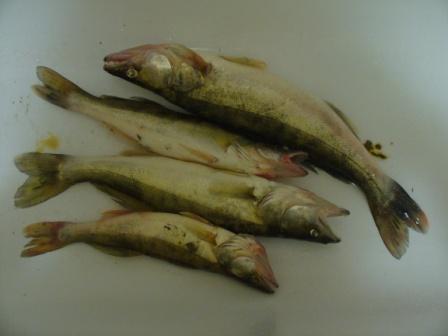 К обеду ветер стих,снова решили испытать судьбу,на этот раз встали на свале. На первом же забросе поклёвка,промох. На втором забросе в этом же месте ударчик,берш. В итоге 6 реализованых поклёвок. 4 судака,2 берша. Потом снова ветер волна и