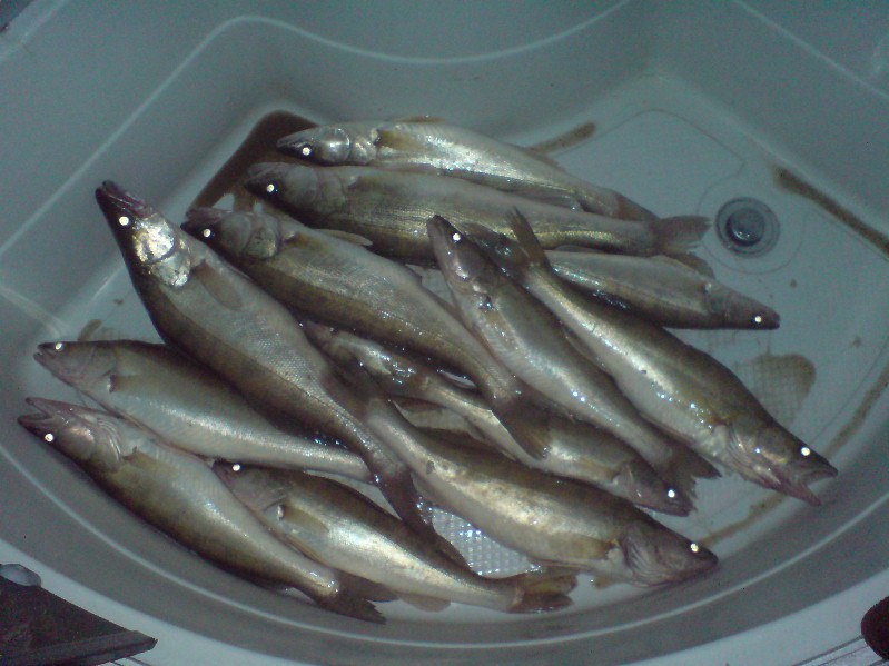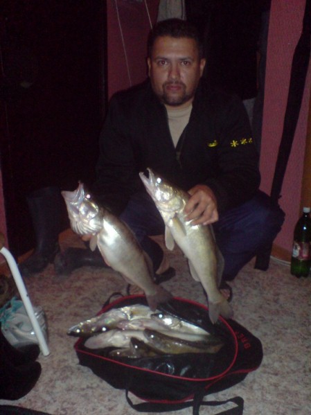 на двоих -хвостов 30 судака под кило один 2 кг и один на 1.5 (у меня - у Сереги не взвешивал(Большое спасибо за науку)))) ... Жаден, голоден, берет все - отработали 80% домашнего творчества - "бакены", поролоновые рыбки, дорогая съедобная резина и "простые" расцветки ассасинов, как рекомендация - увеличивайте приманки! Джиг-головки работали оптимально порядка 26-36 гр.