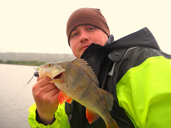 на бой мерного жереха, потом окунь, щука, под закат рыбалки еще и несколько судаков прихватили. Один судак около двушки наверное. Сново сильно промокли.