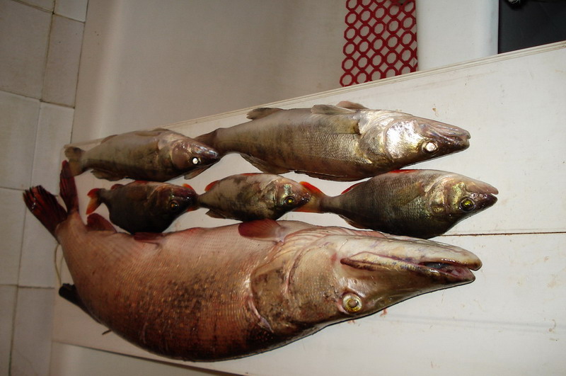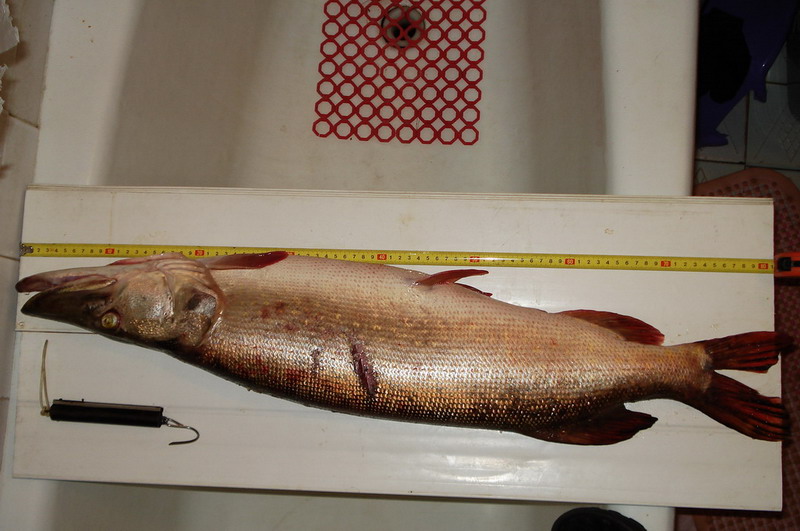 Действительно, рыба капризная. Я безрезультатно макал всю свою колекцию воблеров. В понедельник было пасмурно и почти дождик. Неожидано отыгрался китайский ноунейм минноу — упористый толстячок с синей спинкой. Взял щучку, товарного окуня, одного шнурка, у которого был поврежден глаз и хлестала кровища. Шнурки по 30 см садились одним за одним — отпускал. В этот день никого из снинингистов не видел.