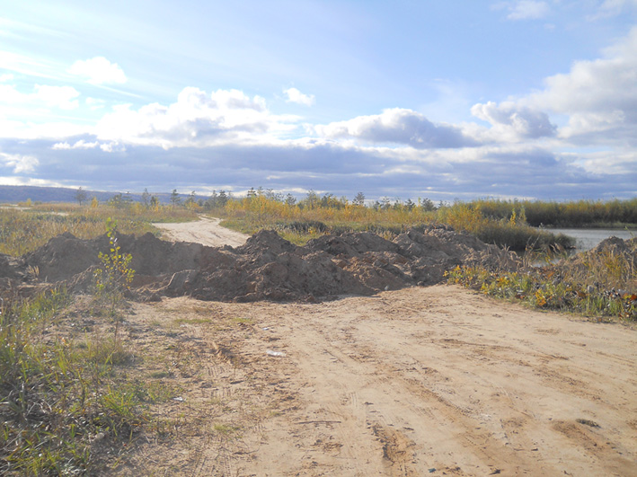 Похоже, можно справа проехать, обогнуть эту канаву. Есть колея. И когда я шел к перекату, то видел справа "ниву" на противоположном берегу. Но я не проверял этот проезд!