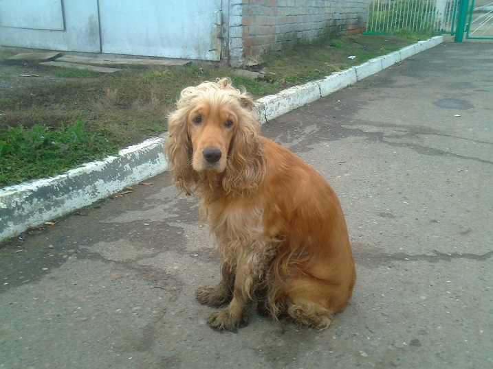 найден спаниель цвет светло коричневый,кабель,хвост купирован.найден в районе деревни сухарево.
