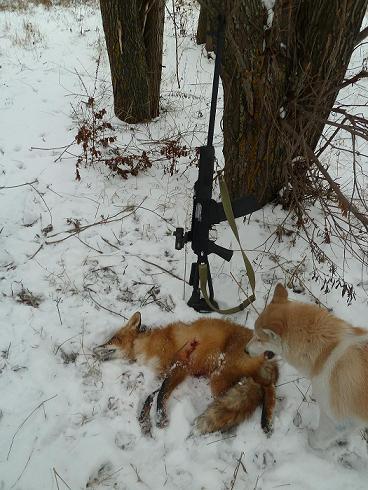 Кстати в деревне или селе, короче около населенного пункта Кульбаши. Следов море, зайца не видели. Я одну лису добыл и товарищи одну. Профессионалы. Один выстрел и она просто легла. А я с четвертого.   Кстати, не ругайтесь, да, у меня Сайга. Пулемет и т.п. Но красивая.