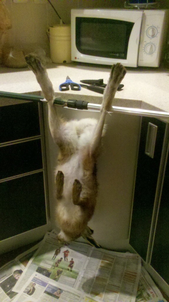 подсачек кажется? не хиловат? я обычно за лапу привяжу до пупа обдеру а потом силой стаскиваю до ушей(нога выдерживает)))