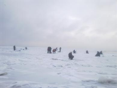 . Руки пахнут рыбой,воздух чистейший, компания старых друзей, что еще нужно рыбаку. Пройдено 5 км, набурено море лунок. Хотя и есть физическая усталость, зато эмоциональный заряд зашкаливает, рыбалкой доволен.