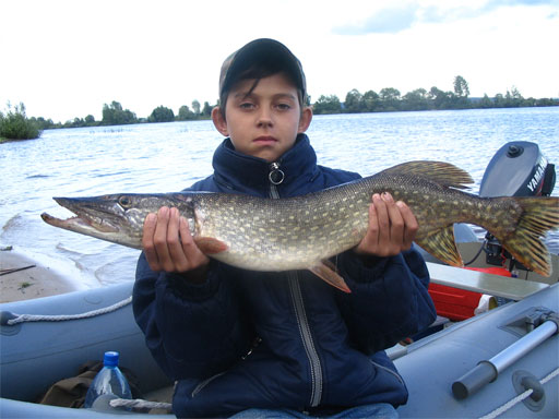 Ринат говорит, что руки не держут, мы его подбадриваем. Всплывает щука около 4-5 кг, а поводка то нет. Вот она у лодки, Ринат быстро подтягивает ее к себе, вот она ошибка, она идет навстречу шнуру срезает его, проходит в сантиметрах от подсака. Успокаиваем Рината, тут вдали гремит гром, решаем возвращаться. На обратном пути выливаю с кроссовок воду и выжимаю носки, становится легче, но пробивает небольшая дрожь. На обратном пути останавливаемся у «Щурячего». Забросы, у меня опять поклевка и тишина, дождь прекратился, выглянуло солнце, на воде почти штиль, красотище. Тут знакомое и приятное слово: - ЕСТЬ. Это Ринат, подкачивает рыбу к лодке, она уходит в стороны и под лодку. Мы его не торопим, он не торопясь ее поднимает и заводит в подсак, щука потянула почти на 3 кг. До этого Ринат просился домой, говорил, что промок и заболеет, но после этого желание ехать домой у него пропадает. Перемещаемся, у меня поклевка и на хвосте судачьи отметины. Дальше путь домой и сборы. Выездом остался очень доволен, не смотря на экстремальные погодные условия. Понял всю прелесть мотора на лодке, столько мест изведали за один день. Спасибо Марату за предоставленную такую возможность. Ну и Ринату спасибо, он в очередной раз нас оставил с носом. Мы с Маратом прикалывались, и просили у Рината советов по поимке рыбы. Вот такая рыбалка с экстрим выездом, с промокшей до трусов одеждой……