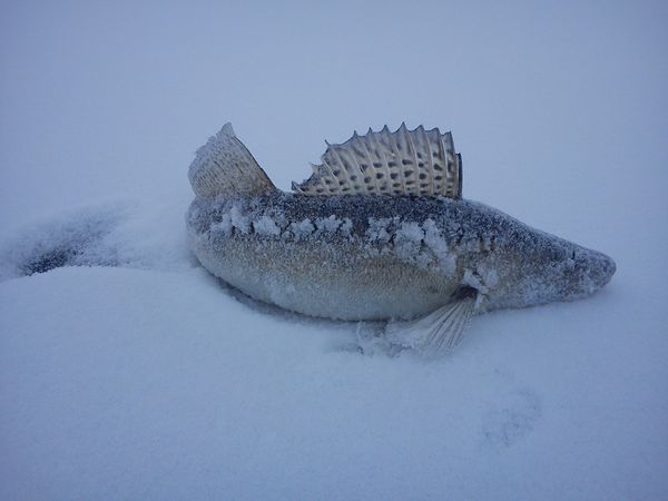 Поклевывал судачок 0,5-1,5 кг. Лениво , но весь день. Два достойные экземмпляра до лунки не дошли