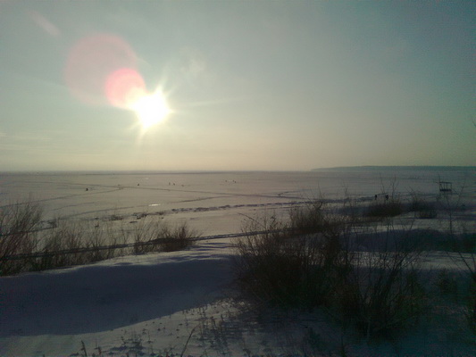 3.12.2011 г. Атабаево, пешочком - 4,5 км. в сторону Лобача. Погода отличная. С утра и после 14.00 активизация клева. Глубины 13-11-8 м. Тяги практически нет. Присутствуют сети... По снастям. Моя любимая, проверенная многими рыбалками, отсекающая мелочь самодельная блесна молчала как рыба об лед. В 11.оо достал забытую мормышечно-лепестковую удочку(клык и короткий поводок с крючком на светонакопительной шайбочке) и понеслось. По рыбалке в основном - мелкий берш. Многие багрились за пузо и вылазили как балансир. Из откровенной мелочи, кого было возможно стряхивал, отпускал, если медицина бессильна - в пакет. Около 15.00 порадовал очень приличный бершик.Примерно в 15.00 решил повесить неиспользуемый мною Адмирал(перевешенный по совету одного профессионала татфишевца глазом вниз). И до 16.00 он принес мне много приятных поклевок. Но 75 % рыбы поймано на поводок.. Пройдено более 10 км. Если бы не чувство, что истребляешь откровенную мелочь, ( а в масштабах всего Атабаево - просто подрыв генофонда берша), то рыбалкой и клевом очень доволен.