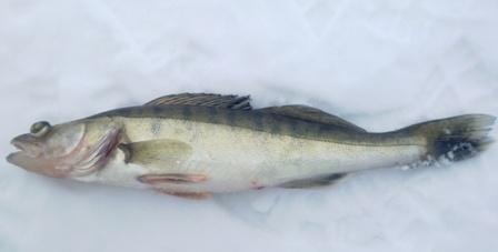 . И ошарашил всех, в том числе и себя: за час с небольшим с двух лунок выдернул с десяток судачков, парочка из них под килошные, остальные в пределах 300-400гр.