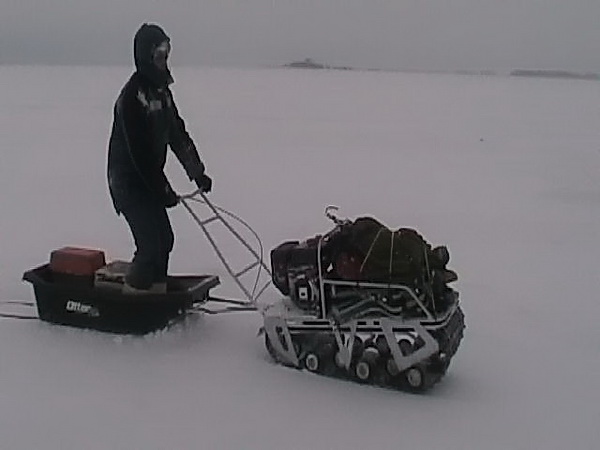 Сегодня Гол. залив. Напротив "Икара" чуть левее у мыса на противоположном берегу. С утра 3 судачка от 0,8 до 1,3 кг. Сильный ветер, тяга немного присутствовала, леска 0,18, кобылка фильдеперсовая, поводок с белой пластмаской. В течении дня погода менялась, ветер стихал, мороз крепчал. Решили сменить место и рванули в Лобыжки. Там среди толпы взял ещё пару судачков по 1,5 кг на балансир с подсадкой. Успешно испытали самодельный мотобуксировщик. Но об этом в другой теме.