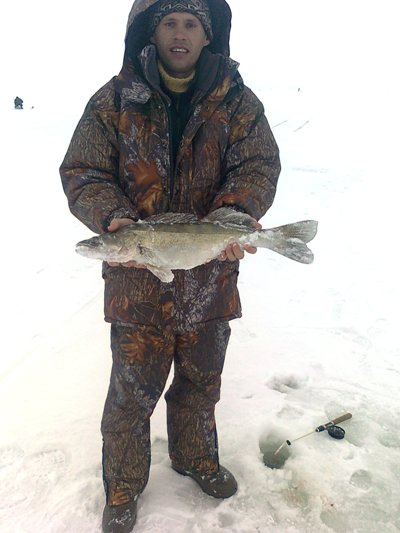 (вот именно так, с большой буквы!), 6,7 кг. У отца даже наверное побольше, был один околокилошник.... При этом довелось понять что же такое пулеметный клев берша.... За 15 минут с одной лунки - 8 штук ну очень товарных!!!!!!! Засыпал с надеждой на завтрашнее (05.01) повторение банкета.....