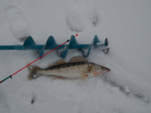Вчера Камское Устье. Утром пошли опять на свои места, по навигатору увидел канаву среди мелков, решил попробывать, глубина 5-6 метров, опустил, пара взмахов и первй удар, берш на 800 гр. Батька тоже забурился. Бурю сдедующую лунку - судак на кг. Ну думаю вот оно