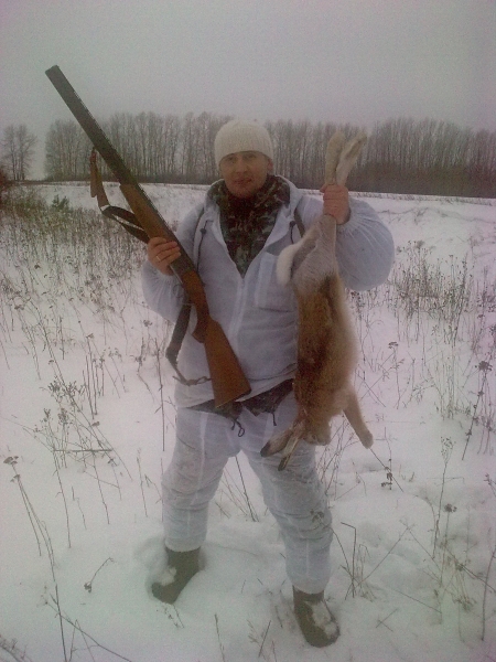 !После этого мы решили идти тихо и не шуметь и сделали верное решение,............прохожу метров 150-200 и вдруг... передо мной метров в 30-ти выскакивает русак...  !!!!  вскидываю ружье расстояние 50-70,даже не успеваю толком прицелиться.БАХ!!! БАХ!!!