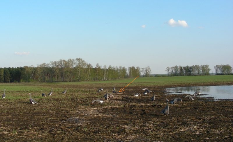 Сегодня о5 пусто.   В пять уже сидел в окопе. Пролетели в метрах 500 два косяка голов 30 и на этом все. Нашел болотце и на нем 2х уток. Стрелять не стал, смотрел в бинокль как утя кружила надо мной в метрах 10 не более. Видимо охраняет, раз сразу не улетает. А селезня я отличить не могу. Ну и при подъезде в посадке обнаружена лиса. Поглазела и свалила в поле не спеша. Похоже покинули нс гусики