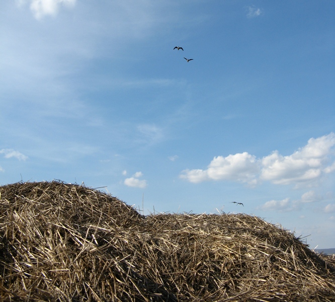 В среду выехали пол третьего ночи на гуся. В 4 были в угодьях. Накануне был дождь, но дорогу не развезло. Хотя до места не доехали и чтобы не откапываться в темноте, решили лучше пройти пешком. Отсутствие конкурентов, а тем более «зенитчиков» не преминуло сказаться на результате. Времени окапываться не было, встали в реденькой посадке. Стояли вдвоём, рядом. Три налёта - три гуся. Хотя позже оказалось, что один из гусей был бит одной дробиной в голову навылет. Такая маленькая пробоина, что ощипав сначала подумали - умер от страха. Другой улетел метров на 200, пришлось добирать. Четвёртого из нормы решили оставить на вечер и в 7 утра пошли к машине. За день на поле скопилось больше тысячи гусей. Никто не знает, кто раздал гусям часы? До 5 вечера летал над нами не боясь. Но после как знали, что люди уже не так добры, а в руках у них не сачки для бабочек. Этот кадр сделал без пяти пять, себе на совесть форумчанам на удивление. Подошли другие охотники, обещали не мешать, но их хождение по полю в поисках места для засидки, гусям не понравилось. Гуси улетели. И только на пёрышке, опустившемся с неба после их улёта можно было прочесть: «Мы вернёмся уже следующей весной».