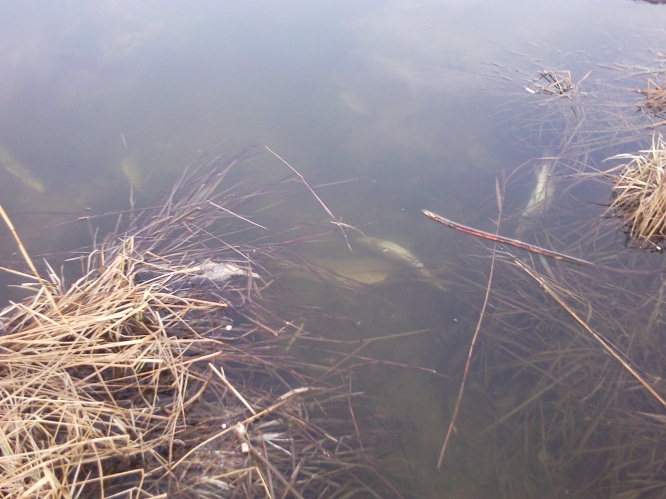 Либо рыба задохнулась из за большой толщины льда,либо новостройки,которые построили недавно около озера ,спускают свои фекалии . Просто обидно что для 10000тысячного посёлка не осталось места для рыбалки и отдыха!!!