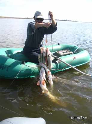 В этот раз в прилове оказались два сазанчика, на 2 и 4 кг. Последнего вываживал минут пятнадцать. Четыре шнурка где-то по 1500 гр, судачки от кило до полутора и несколько бершей.