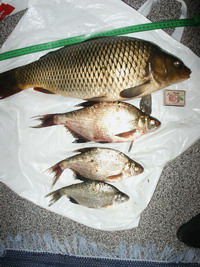 Итог рыбалки: сазан потянул на 2300 (47 см), 3 подлещика –500, 300, 200 гр. Всю мелочь я отпустил.