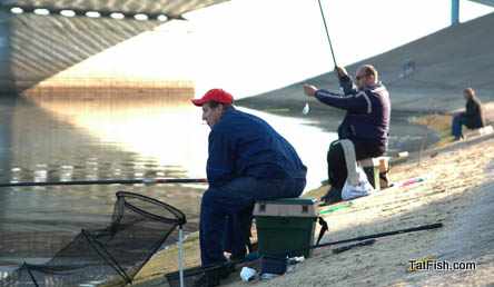 19.30 любуюсь заходящим солнцем и краем глаза наблюдаю очередную поклевку, поплавок слегка приподнялся протанцевав так несколько секунд слегка притопился, ну как сказано в книжках нужно слегка выдержать и посечь, что я сделал. Что последовало потом, я не ожидал- было ощущение, что зацепил подводную лодку, леска со свистом режет воду, удочка в дугу. Рыба бросается в глубину, но нет думаю, так нас не проведешь – начинаю потихоньку подкачивать, в голову приходит злорадная мысль- подсака то – нет. Начинаю кричать в сторону ближайших рыбаков помочь с подсачком ( слава богу у одного оказался, правда какой-то неполноценный, без ручки, но и на том спасибо). Тем временем удается развернуть рыбу вдоль берега, подмотав немного лески пытаюсь сдержать ее рывки в глубину, не торопясь двинулся вслед за ней вдоль берега держа согнутую в дугу удочку, пройдя метров 20 влево, с трудом разворачиваю вправо. Во общем прогуливал я его по берегу раз 5 ( народу на берегу в эти 10-15 мин собралось, еще бы бесплатное зрелище), чувствую начинает сдаваться, уже вижу периодически верхний плавник и хвост, даю немного глотнуть воздуха и все вижу сдался, и тихонечко подтягиваю к берегу, и тут как назло проезжает очередная милицейская моторка – волны хлещут мужик с подобием подсака подобраться к воде не может. Ну ничего, попытаемся рискнуть, подвожу уже в третий раз ( молодец мужик не побоялся подальше в воду зайти) наконец-то накрываем его сачком…