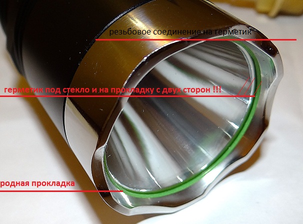 Последнее действие - посадка хромированной части на корпус через герметик-селикон. Переживал за герметичность кнопки включения, которая расположена с торца крышки АКБ - напрасно, погружения в течении 3-х часов выдаржала и вся конструкция и кнопка. Погружался с ним метров на 7-8. Думаю, что герметичность впервую очередь зависит от серьезности подхода к процессу и владения своими руками. Удачи.
