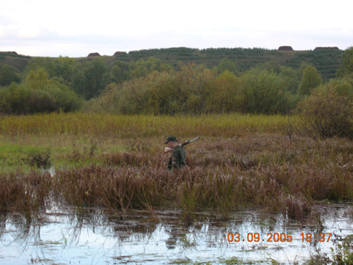 Дойдя до условленного места, стали дожидаться Мутного, который должен был приехать на машине. С места ожидания отлично было видны наши охотничьи угодья, как и то что место наше уже занято и соседнее и вообще народу было достаточно много и как мы потом убедились это было хорошо. Простояв минут 5 под дождем с носов V и мистера Р уже давно капало это только мы MIB и zuf решили захватить зонты благодаря этому мы были почти сухими чего нельзя было сказать о наших рюкзаках в частности и всей четверки в целом. В общем, стоять под дождем и бесцельно мокнуть на одном месте неинтересно (кто знает, поймет) zuf предложил нам идти к месту стоянки, а сам, включив рацию и скомандовав то же самое мне (MIB’y) остался дожидаться приезда Мутного.
