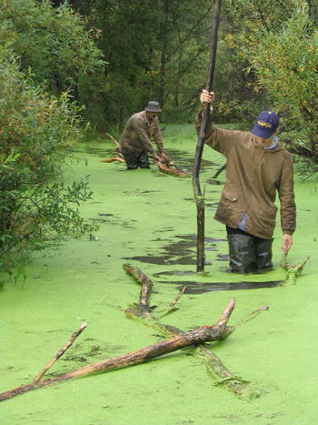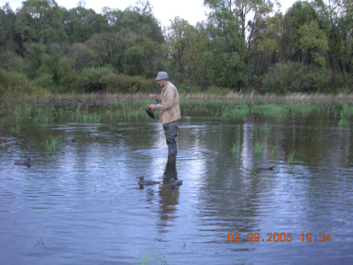 В процессе разбивания лагеря не было ничего интересного все как у обычных охотников. Если что и было необычное так это то, что за дровами приходилось ходить в затопленный лес на пределе возможностей «болотников». Там же пилить и сплавлять дрова обратно к стоянке, речка, на берегу которой мы остановились, вышла из берегов поэтому и создалось такое половодье. Набрав дров и приготовив поесть, решили все-таки охоту начать, благо время уже приближалось к 18 часам.