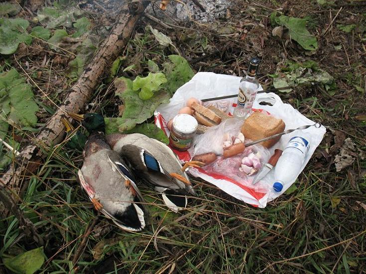 Стая голов 15-20 пошла на снижение, уже расправили крылья. И тут они видят мое лицо (маску посеял где-то) и аривидерчи... 1 раз выстрелил в ближайшего - не попал. Гд-то вдалеке тонкой ниточкой кружит стая гусей. Недовольный собой поехал по реке. Возле первого же ближайшего поворота че-то остановился возле берега. И тут 3 утки взлетают. Бабахнул - не попал. Подошел к самому берег. Черт, еще один оказывается остался сидеть... Здоровый, как гусь. Просто ....нно здоровый, кое-как с воды поднялся. И тут промазал.