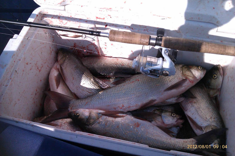 Осваивал фидер (мой третий выход с новой для меня снастью). с 5 до 10 утра. 6 кг подлещиков. попались 4 то ли карпа, то ли гибрида. К сожалению, два раза не удалось выудить солидных лещей - ушли прямо у берега. Будем оттачивать навыки и умения.