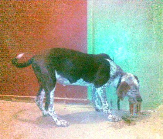 Нашедшая собаку думает, что это охотничья собака а ля курцхаар. я думаю, что метис, хотя сама не видела. Но че-то по хвосту, брылям и ухам - вроде не оно. Или оно?