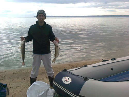 не смотря на то, что не было тяги. Очень много холостых и микропоклевок. Ближе к обеду поднялся весьма сильный ветер и врубили одуренную тягу. Рыбачить стало не возможно, да и почему то пропал клев. В итоге 3 судачка закилошного размера.
