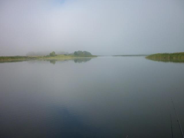 Погода шикарная, ветра нет, туман. Подкормили и начались поклевки сорожки.