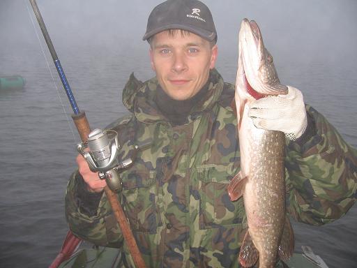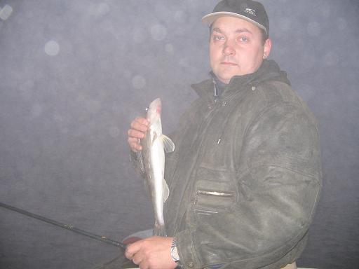 После долгого кручения в тумане и темноте наконец то нашли искомое место. Перваясмчучка попалась уже на предрассветных сумерках. Потом был судачёк, грамм на 700, потом уже ближе к часам к 9 счучка на 2600. У меня было пара поклёвок, впервый раз не смог просеч из-за слишком расслабенного фрикциона, а второй - был удар в хвост прямо под лодкой.