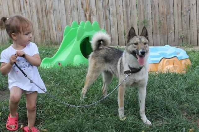 Около месяца назад (начало - середина) октября в Верхнем Услоне около земельного комитета пристала собака, очень похожа на лайку, только окрас был бело-серый, без рыжины , с ошейником, волочила цепь около 4-х метров.