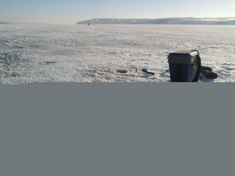 Сегодня, Кама, от рассвета и до обеда. Еще по темноте, залетел обоими ногами в майну возле торосов, почти по колено, промочился... Но все равно пошел на старое место. Там все тот же берш, клевал на адмирал 7 грамм. Хватило одной лунки. Клев понравился, а вот промокшие ноги нет.
