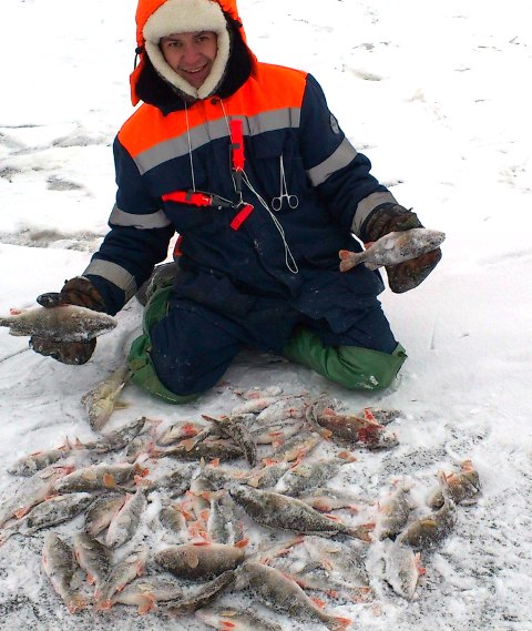 Вчера. Макаровка. Первый выезд в этом году на лед. На берегу машин 25-30. Ветер с утра 3 мс , к обеду и вовсе 1 мс. Солнечно весь день. Глубины от 3-12. Судака не нашел, а берш брал исключительно на 9-12 метрах, но такой мелкий, что из 5 пойманных попадались пару съедобных. Хотя многих это не смущало и они собирали всю рыбу, попавшуюся на крючек. Скорее бы выходной...