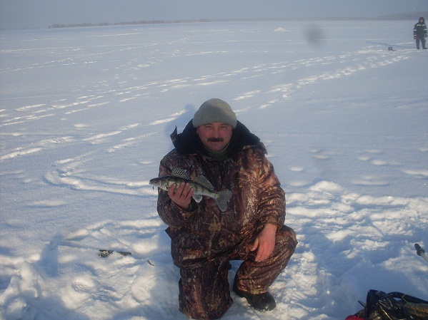 Всех с праздником !!! Вот и я созрел для небольшого,первого отчета )) "Затон" -сегодня. На утренний клев немного опоздали т.к. сломался снегоход. Попали на точку в 09.10 утра глубина от 4 до 6 метров., ,При разматывании лески первый удар-судачок примерно на 1 кг. Далее в течении 30 минут поклевки и реализации 10 таких же рыб )) Один сход с обрывом (( Далее до трех часов дня редкие поклевки товарного берша.После подошел дядя судак.Клев длился в течении полу часа.Кто успел, а у кого то лосось...Мне клюнуло,что то нереально большое...С трудом приподнял зверя на метр со дна, при том порезав пальцы об леску..Далее небольшая борьба и сход(((( Сломался крючок на тройнике.В итоге 9кг и 400гр судака и пару бершей.Сходы ,обрывы, несовместимость рып с лунками было много у многих. Кому то повезло более до 30кг хорошего судака.