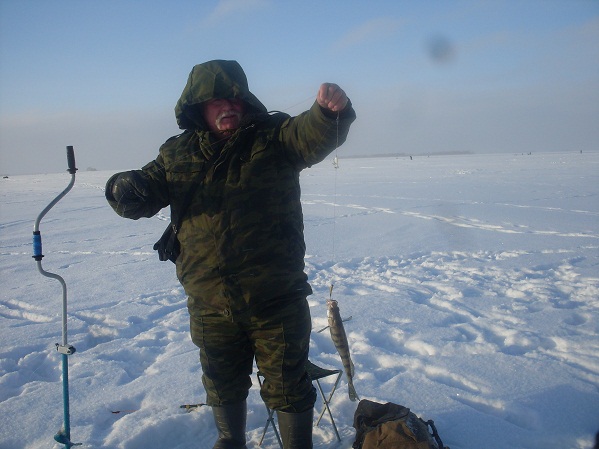 - О, Серега, ветер подул, сказал я, и тут же кивок на удочке сказал- ОТДАЙ!!!, зло так сказал... ! подсекаю есть!!! пру, вытаскиваю наижернейший берш высовывает свою "моську" из лунки.