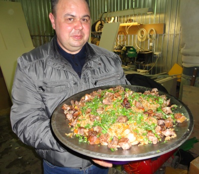 А вообще очень люблю готовить и причем люди говорят здорово ... вот например настоящий узбекский плов - моя коронка готовил на костре когда обмывали приобретение  двигателя для моего катера вот фото