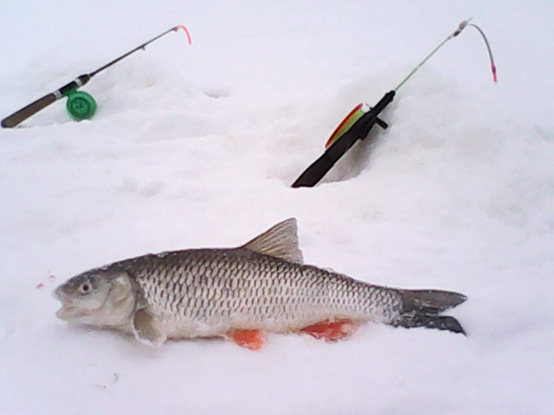 На эту же игру соблазнялись голавлики, своим ударом чуть не выбивая из рук удочку. Крупных не было, но если бы не леска 0,12 мм. - пришлось бы туго. Одним словом, подсечка представляла собой выдергивание рыбы из лунки.