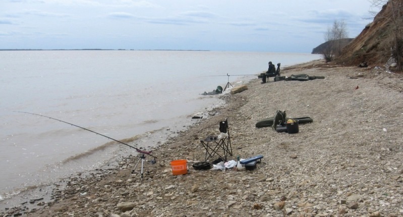 Рыболовов на берегу практически нет. Очень холодная вода и непривычная для этого времени погода, по-видимому, пока не дают прийти рыбе в норму после ледохода. Первые экземпляры были выловлены лишь спустя час после начала закорма. Потом пришлось постоянно чередовать насадки, пользоваться дипами, чтобы расшевелить привередливую рыбу. Клев был очень рваный, рыба ведет себя непредсказуемо – несколько поклевок подряд сменяются резким молчанием, смена наживки, дипование – опять несколько тычков и снова тишина, и так много раз подряд. На опарыш поклевки очень осторожные, на червя более уверенные.