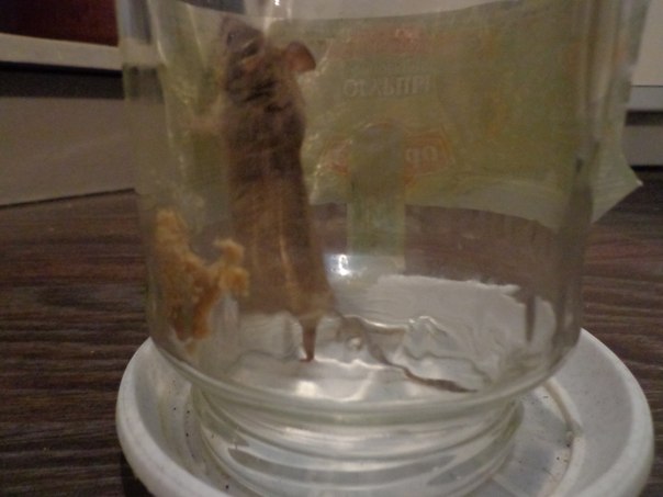 Рецепт. к внутренней стороне банки крепится мякиш, под край банки ставится монетка. мышь ест мякиш монетка соскальзывает, банка падает, мышка в ловушке. потом аккуратно банка выносится на улицу. нет убийства и нет грызуна.