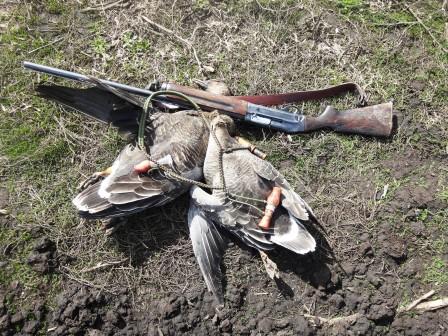 Открытие 26 апреля в Татарстане. Гусь транзитный , но несколько стай все таки снизились, взяли 2 гуменника.Поехали на озеро варить шулюм. пока дрова , туда сюда, смотрю гуси летят, я в манок клю клю, налетают на машину там брат, у него в стволах 5-ка, бабах- белолобик готов. На вечер поехали в посадку, гусь из-зс ветра шол ниже чем обычно, на отца было 2 налета -2гуся белолоб и гумен.