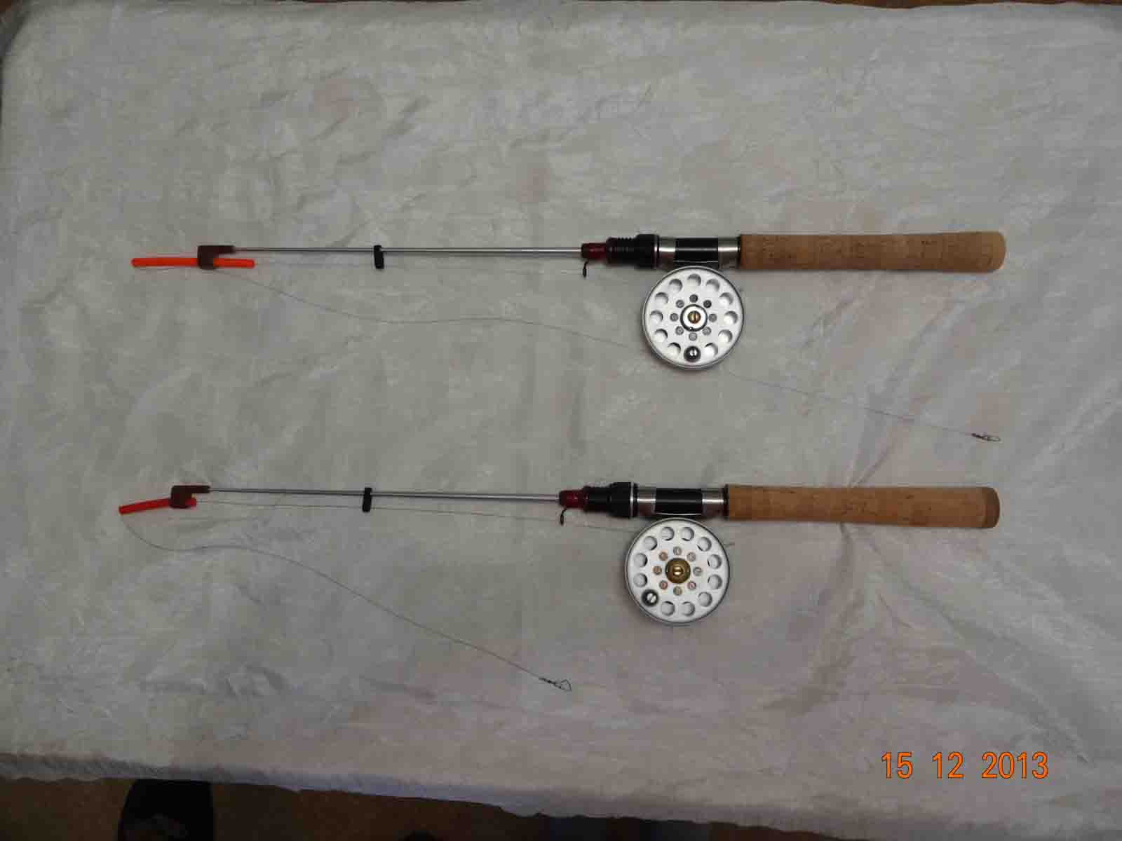 Это мои... только я использую кивки... на верхней катушка для красоты. Удочки телескопические(в сложеном виде 40см - делал что бы в ящик лезли, только с ящиком не подружился), угольные, легкие.