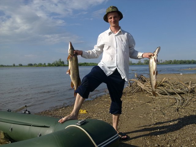 С лодки,пару щук и один судачек=)прогрёб километров 7-8=)